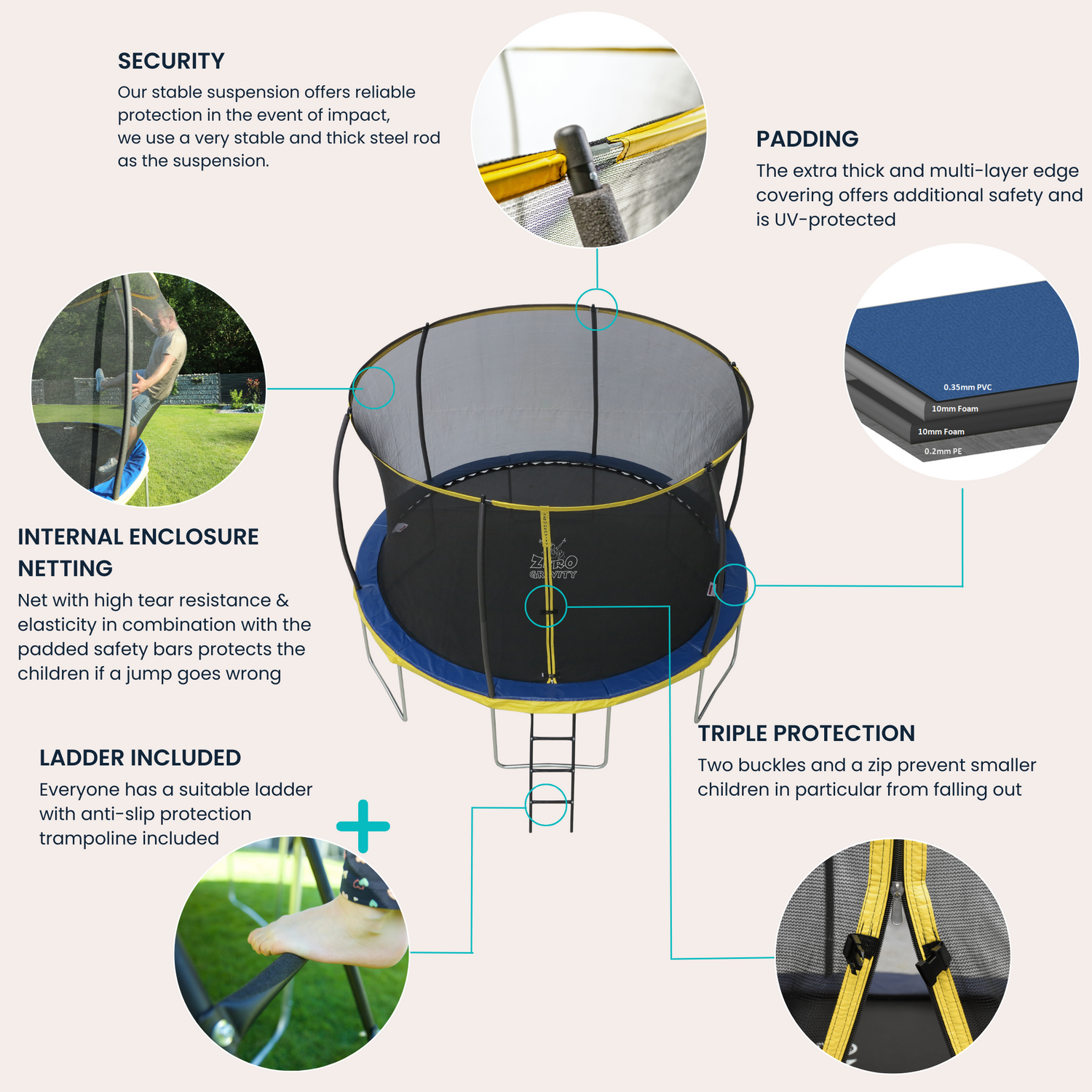 - Jump mat: tear-resistant, durable and UV-resistant jumping mat made of US mesh